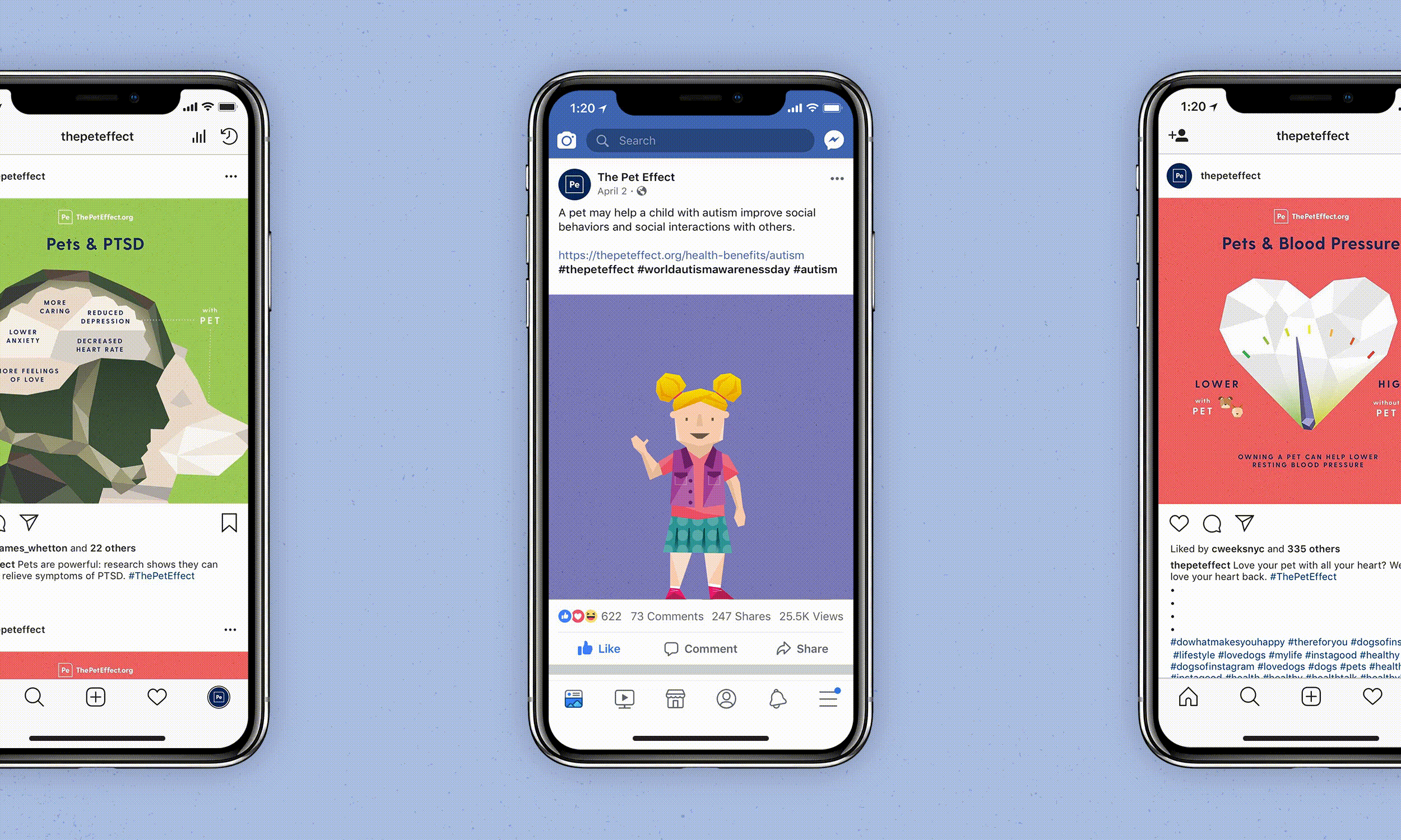 Backed by scientific research, The Pet Effect is an initiative demonstrating the positive impact pets have on human health. In partnership with Zoetis and the Human Animal Bond Research Institute, we translated complex findings into clear, engaging storytelling through a website, launch campaign, infographics, and social media.